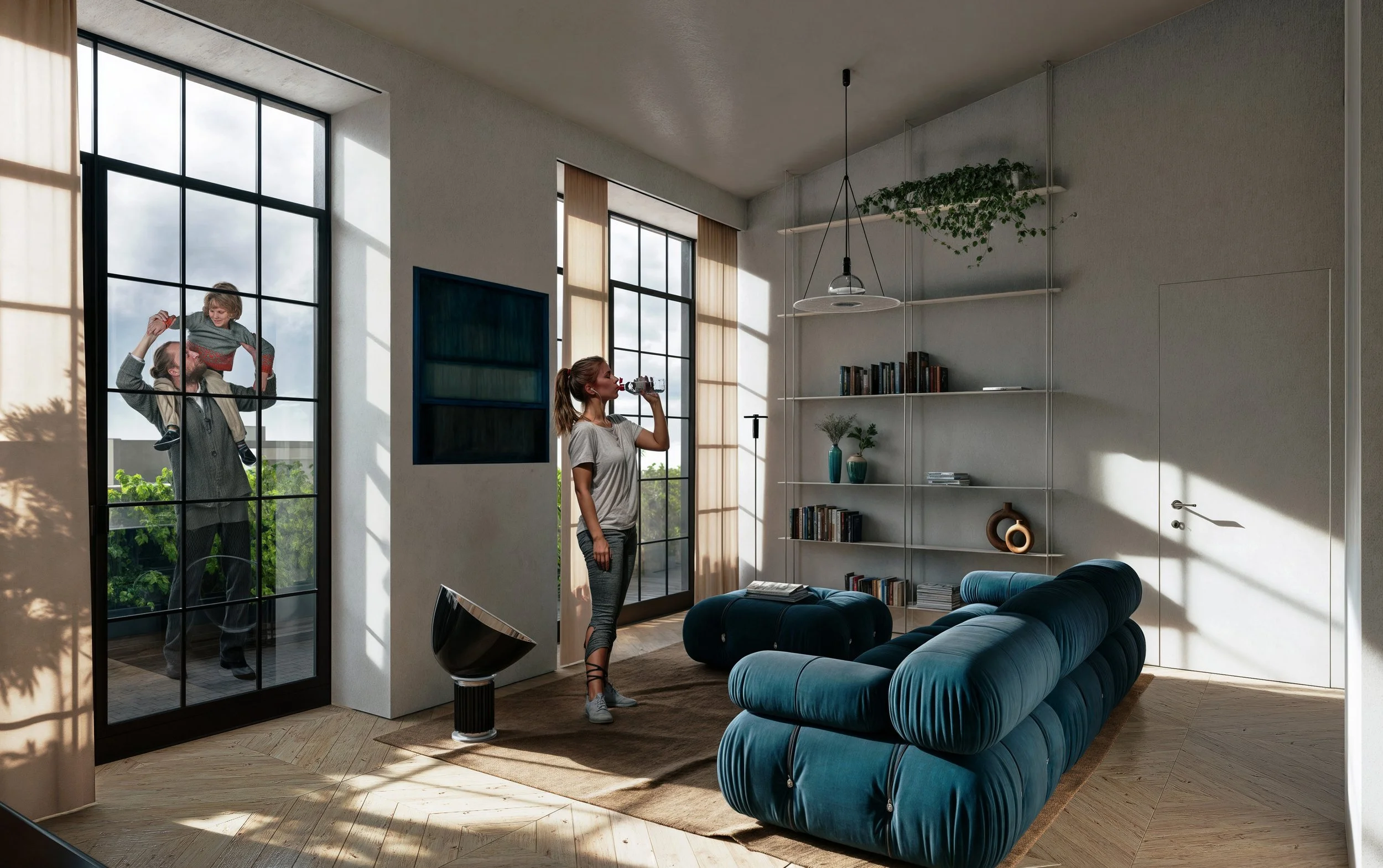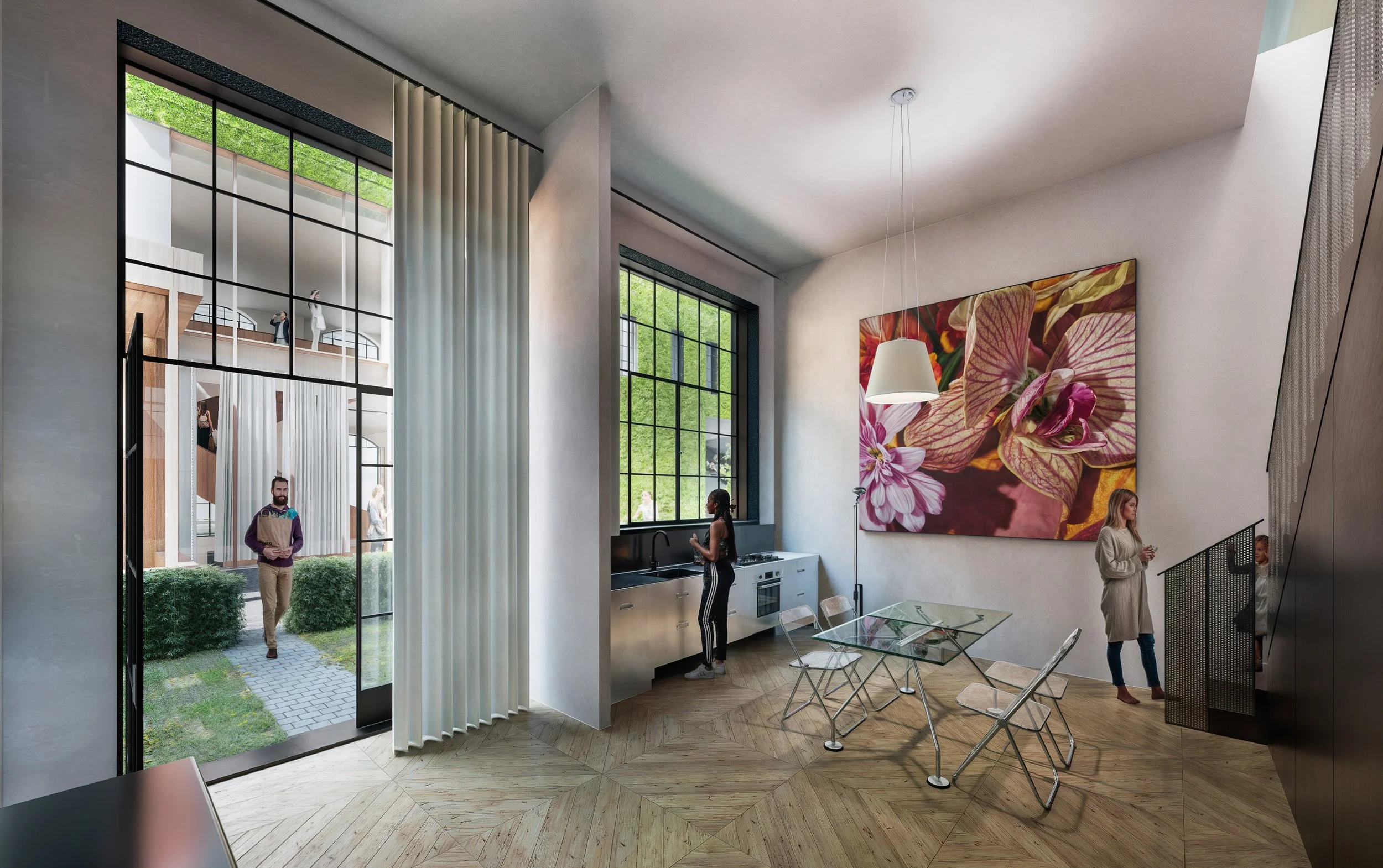 The internal courtyard becomes the true heart of the project — a central space of encounter and community life for both residents and office users. It is reimagined as a shared garden, enriched with private entrance patios and small green areas serving the duplex and triplex apartments. In this way, the courtyard is transformed from a neglected void into a vibrant communal landscape, embodying the renewed identity and contemporary spirit of the entire complex.